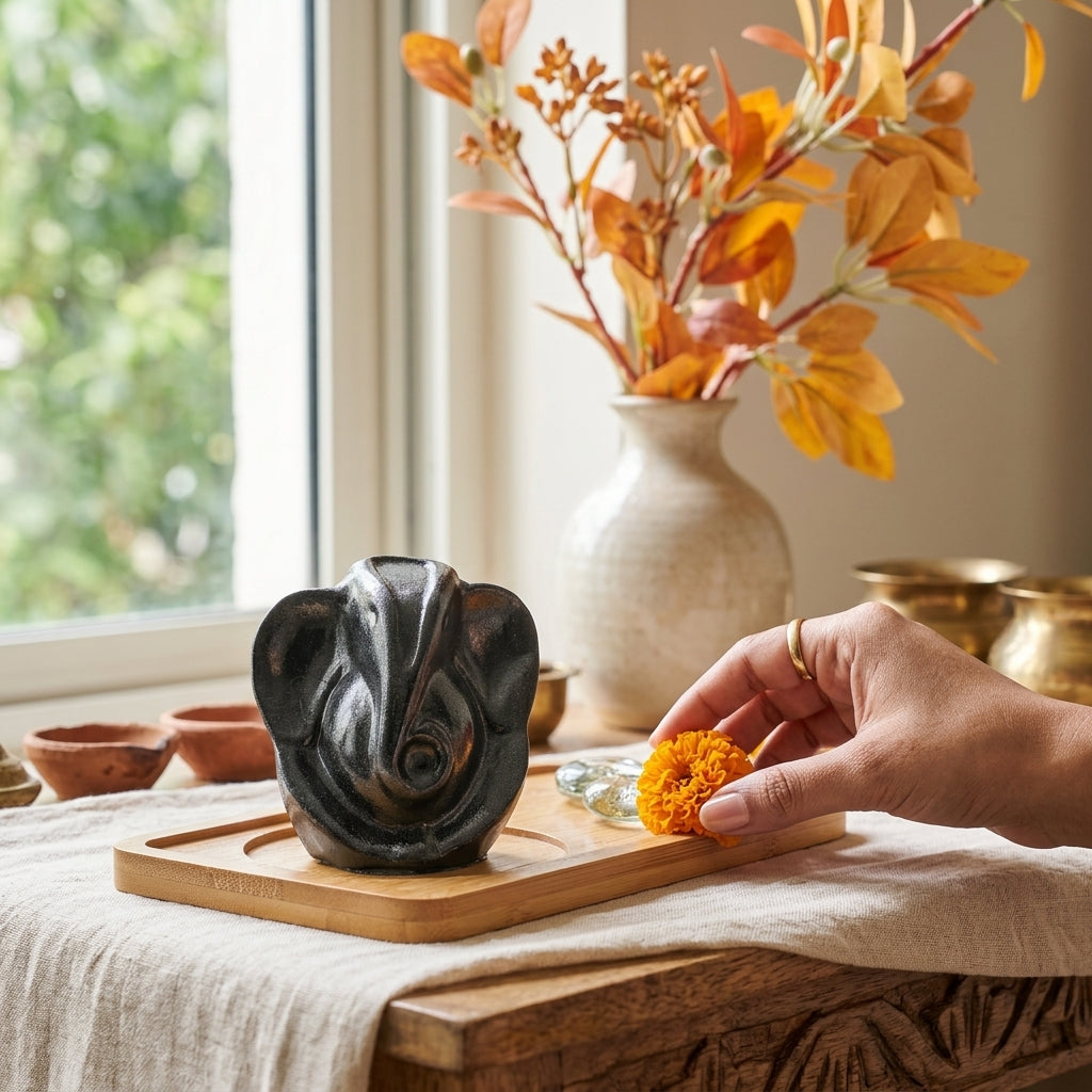 Ritual: On a Wednesday, light a candle or incense, hold the idol, and chant “Om Gan Ganapataye Namah” 108 times to set your intention.