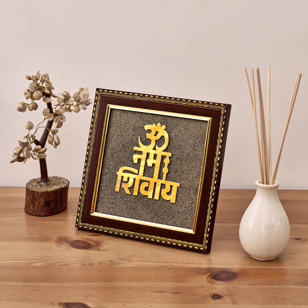 Om Namah Shivay Natural Pyrite Dust Frame for Protection & Peace